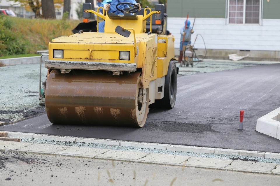 道路や駐車場などアスファルト舗装の敷設工事を行います。
